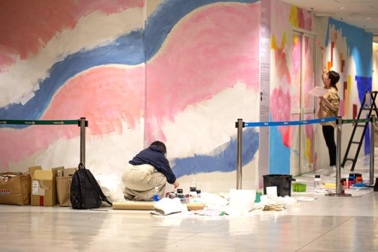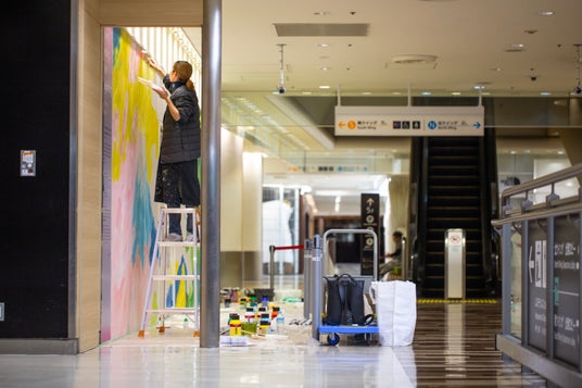 現場の照明や空港利用者の視線の高さ・動きといった空間の条件を丁寧に見極めながら広大なキャンバスに筆を走らせることで、絵具の厚みや筆の跡が生む微細な凹凸が、印刷では決して再現できない“手描きならではの質感と迫力”を作品に与えています。描くアーティストによって全く異なる表情を見せるそのアートは、個性が息づく唯一無二の世界です。