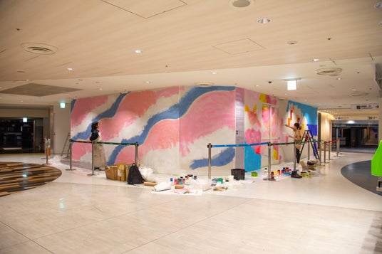 仮囲いアート1.~2.(左からartist:鈴木真里奈、細谷みづき)