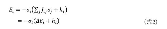 この𝜎𝑖の変化を定めるエネルギーEiは、下記の(式2)で表すことができます。