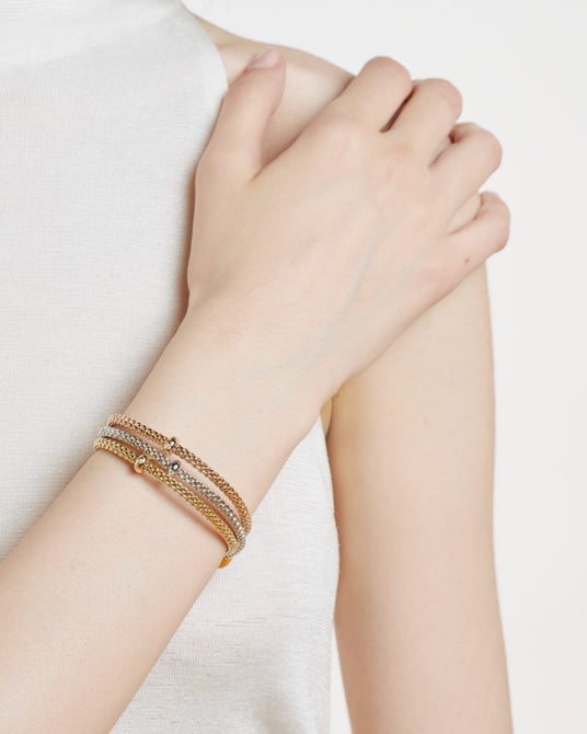 ブランドのシグネチャーである18Kゴールド製の「ノヴェチェントメッシュチェーン」で構成されたコレクションはどれもタイムレスでエレガント。トレンドを超えた不朽の名作です。そしてブランドを代表するアイコンであり特許技術、「FLEX’IT(フレグジット)」ブレスレットは、K18製でありながらチェーンに伸縮性があり、滑らかで最高の着け心地を保証します。