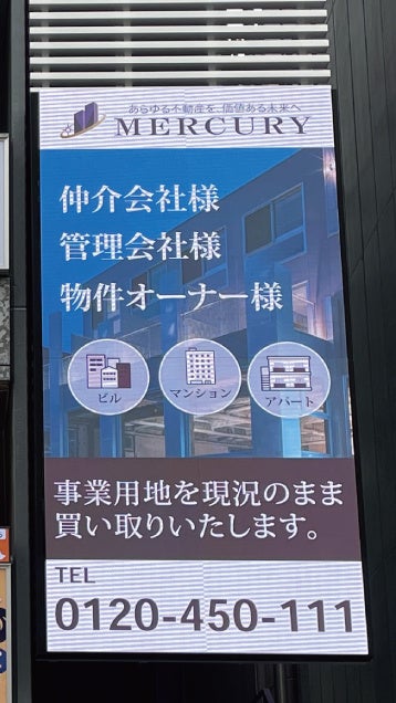 株式会社マーキュリーは、これまで不動産の買取・不動産開発を中心としたサービスを提供してまいりました。今般、さらなるブランド認知と地域との接点拡大を目的に、デジタルサイネージを活用した情報発信の強化を図る運びとなりました。