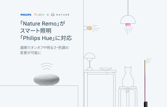 「Nature Remo」がスマート照明「Philips Hue」に対応 遠隔でオンオフや明るさ・色調の変更が可能に