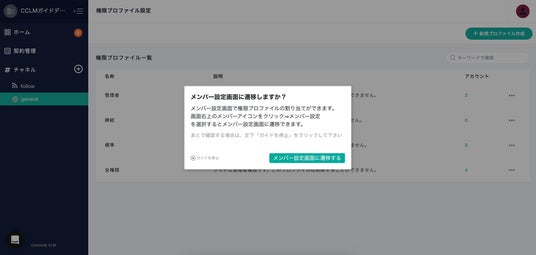 ユーザーが入力でつまずきやすい権限付与操作を順を追って操作ガイドで案内