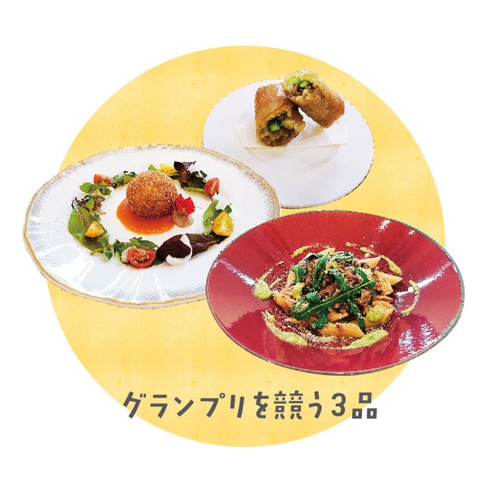 調理工程で出る、食べられるのに捨てられてしまう食材(端材)や、地元農家で課題となっている規格外食材を使用し、ホテルの洋食・中華の若手シェフが考案したサステナブルメニューのグランプリを決定するコンテストを開催。エントリーされた全15品の中から事前審査でノミネートされた3品を来場者が試食し、最もサステナブルでおいしかったメニューを投票により決定します。