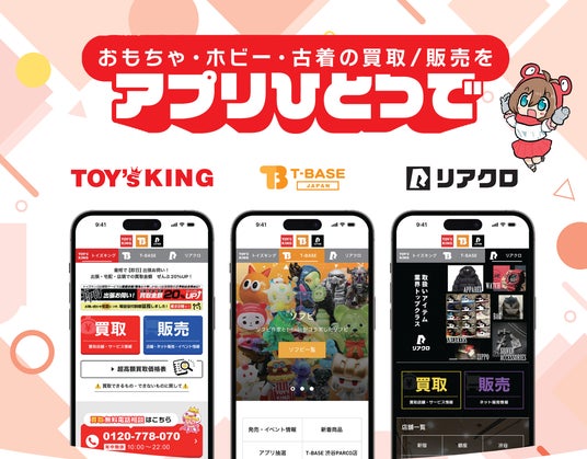 『T-BASE JAPAN』を運営するトイズキング(本社所在地:名古屋市中村区、代表者:山本 祐介)は、トイズキング、T-BASE JAPAN、リアクロの情報がチェックできる公式アプリを、2025年4月28日(月)11時にリリースします。