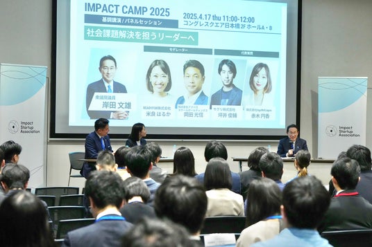 孫世代の相棒サービス「もっとメイト」や多世代コミュニティースペース「モットバ!」を展開する株式会社AgeWellJapan(本社:東京都渋谷区 代表取締役社長:赤木円香、以下:AgeWellJapan)は、2025年4月17日に都内で開催された一般社団法人インパクトスタートアップ協会(Impact Startup Association、以下:ISA)主催のイベント「IMPACT CAMP 2025」に参加しました。イベントでは、岸田文雄元首相による基調講演・パネルセッションが行われ、AgeWellJapan代表の赤木が代表質問者として登壇し、対話の機会を得ました。