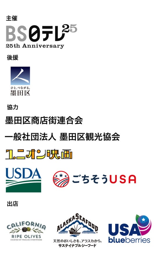 協 力: 墨田区商店街連合会・一般社団法人墨田区観光協会・米国農務省・アメリカ大使館農産物貿易事務所(ATO)・ユニオン映画