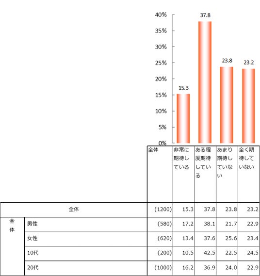 また、環境問題を解決する技術(再生可能エネルギー、CO2削減技術など)については、「ある程度期待している」が全体の37.8%だった。「非常に期待している」(15.3%)と合わせると期待する層は53.1%だった。