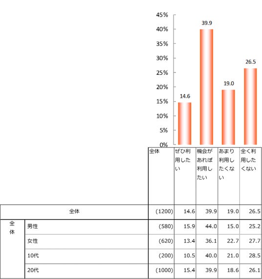 空飛ぶクルマや自動運転車などのモビリティ技術を「機会があれば利用したい」が全体の約4割