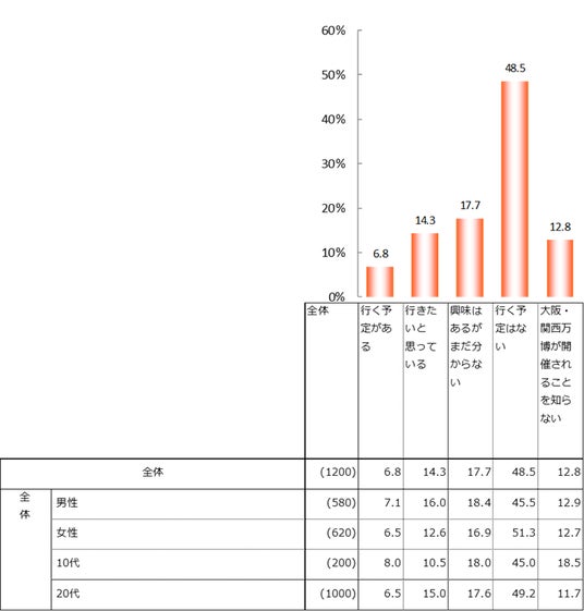 大阪・関西万博へ「行く予定はない」が全体の48.5%を占める一方、38.8%が興味を持っている