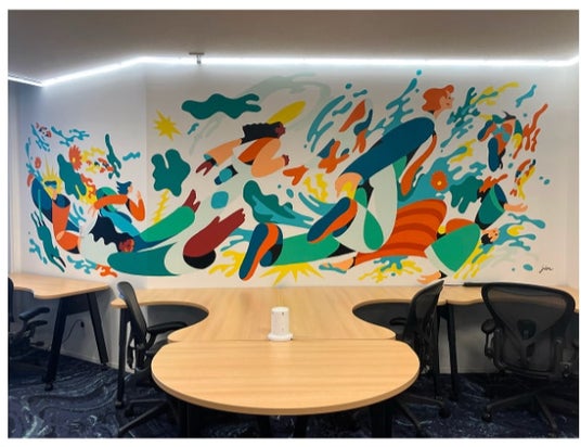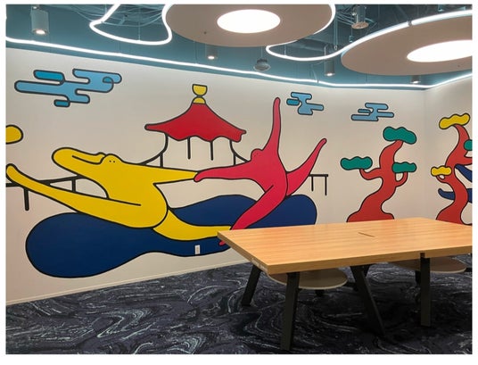 40 社 100 人の入居者からスタートし、入居する企業や団体は、開放的で自由な雰囲気の中、オフィススペースや多彩な共用スペースやアメニティーの利用が可能です。施設内には、福岡にゆかりのあるアーティストによるアート作品が随所に展示されており、創造性を刺激する空間が広がります。さらに、入居者が無料で利用できる本格的なジムも完備しており、仕事と健康の両立を支援します。