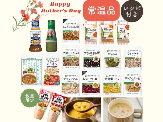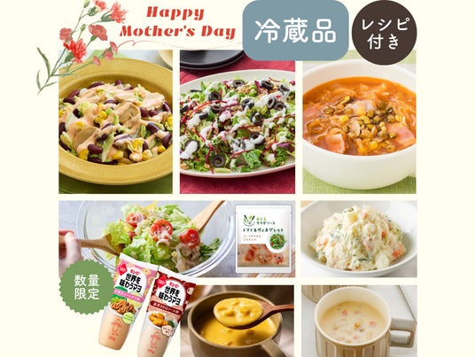 キユーピー株式会社(本社:東京都渋谷区、代表取締役 社長執行役員:高宮 満、以下キユーピー)は、キユーピー公式食品EC「Qummy(キユーミー)」より、サラダやスープ、調味料などの食材が入った「母の日セット」を期間限定で初めて販売します。大切な人に日頃の感謝を伝え、健康的な食生活を支える機会になるように、不足しがちな野菜をおいしく食べられるセットを用意しました。食材セットに加え、おすすめのレシピが書かれたカードも同封しています。販売期間は5月11日(日)までで、5月7日(水)までに注文いただくと、母の日の5月11日(日)にお届け日を指定できます。