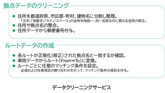 2つ目は、相手探しの前に行うプロセスに生じるハードルで、時としてその必要性が顕在化していません。例えば、多数ある自社のルートの中で、どのルートが非効率なルートであるのかを企業の担当者が把握できていないケースは珍しくありません。また、自社のルートを検討する際に、データを正規化したり、複数のデータを統合する作業に苦慮したりするケースも多くあります。TranOptコンサルティングサービスではこうした工程への支援メニューを用意しています。