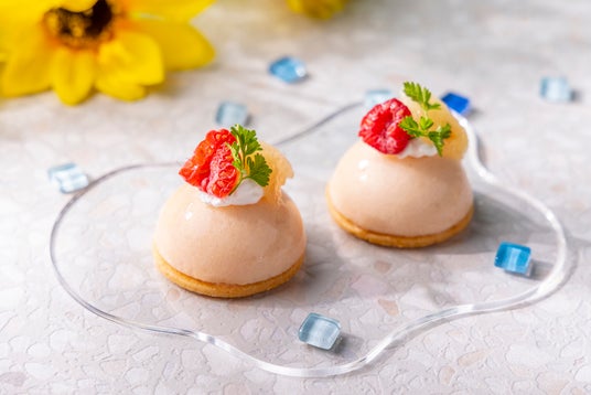 カリブ・ヒルトン発祥のトロピカルカクテル「ピニャ・コラーダ」から着想を得たスイーツ。アルコールを丁寧に飛ばしたマリブ酒を使用し、パイナップルとココナッツの濃厚なムースに、ピンクグレープフルーツゼリーの爽やかな酸味をプラス。まるで南国リゾートにいるかのような、トロピカルな味わいが口いっぱいに広がります。