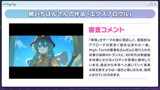 「一緒に作ろう!第27回楽曲コンテストプロセカNEXT」の採用作品が、「庭師のおはなしによると」(作詞・作曲:いのうつはSA)、「エクスプロウル」(作詞・作曲:晴いちばん)に決定いたしました。採用作品は今後リズムゲーム楽曲として追加予定です。