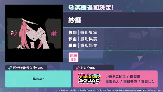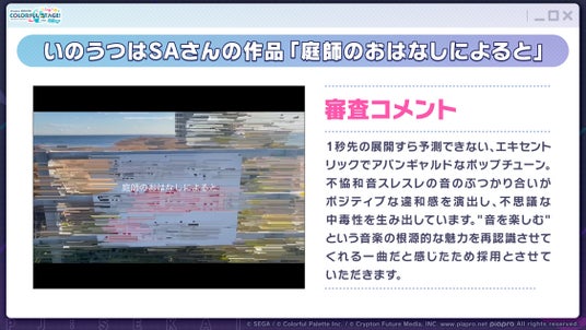 著作権表記:(C) SEGA / (C) Colorful Palette Inc. / (C) Crypton Future Media, INC. www.piapro.net All rights reserved.