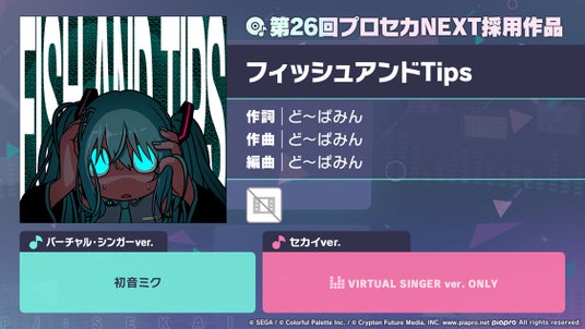 新たなリズムゲーム楽曲として、以下4曲の追加が決定いたしました。「フィッシュアンドTips」(作詞・作曲:ど~ぱみん)は、「第26回楽曲コンテストプロセカNEXT」の採用作品となります。