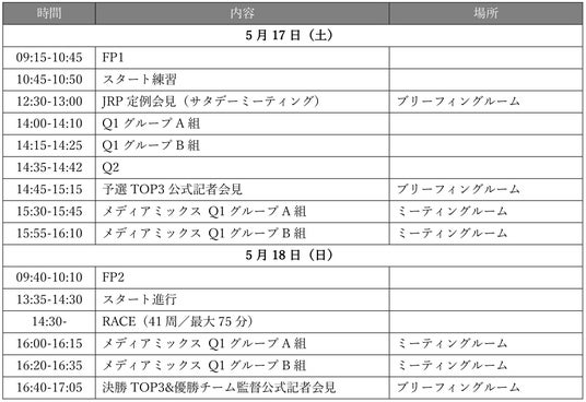 2025 SUPER FORMULA Rd.5 大会スケジュール(暫定版)