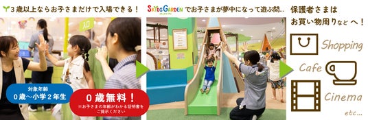 「スキッズガーデン ミナモア店」は、0歳から小学2年生のお子さまを対象とするプレイグラウンドで、3歳以上ならお子さまのみでも入場ができ、最長2時間半までご利用いただけるファミリーのための新スポットです。保育士資格等をもつ“遊びのプロ”である「プレイリーダー」がお子さまの遊びをサポートするので、お子さまが夢中になって遊ぶ間、保護者さまはミナモアや駅近隣でゆっくりとお買い物やお食事を楽しむなど、親子それぞれで有意義な時間を過ごす体験を提供します。