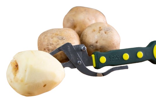 長短2つの突起部で、食材をしっかり固定(ホールド)。丸いジャガイモやツルツルしたタマネギなど、従来加工が難しかった食材も安定して保持します。