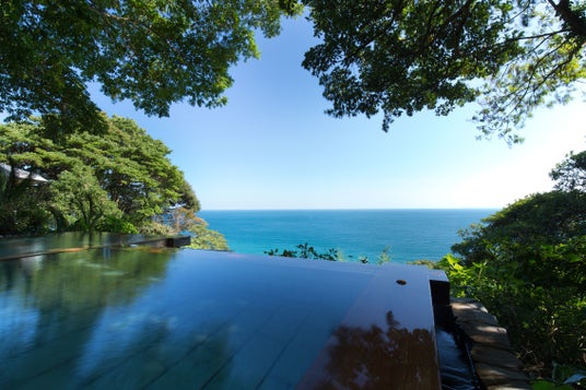 露天風呂からは、空と海の青が溶けあうような絶景をご覧いただけます。