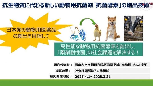 【岡山大学】岡山大学学術研究院医歯薬学域の内山淳平准教授が「PSI GAPファンド・ステップ2」に採択 ~抗菌酵素による新たな動物用医薬の創出へ~