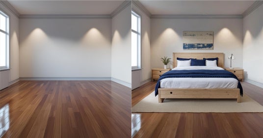 床の色をAIが読み取り、広範囲での画像削除が可能です。入居中のお部屋でも居住者様に気を遣わせることなく、家具や家電を削除できます。