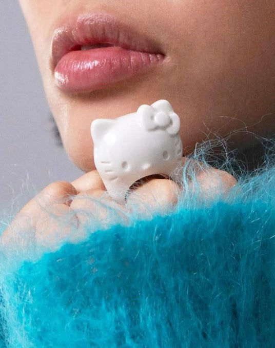 アイコニックなハローキティの魅力をそのままに、リングとしてのバランスと着け心地が考えられた愛らしいデザインのリング