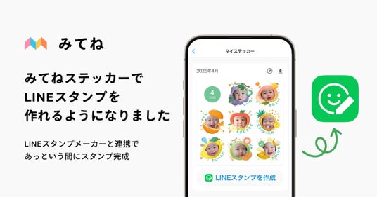 株式会社MIXI(東京都渋谷区、代表取締役社長 上級執行役員 CEO:木村 弘毅)は、子どもの写真・動画共有アプリ「家族アルバム みてね」(以下「みてね」)において、みてね「ステッカープラン」と、LINEスタンプ作成アプリ「LINEスタンプメーカー」が連携したサービスを提供開始しました。