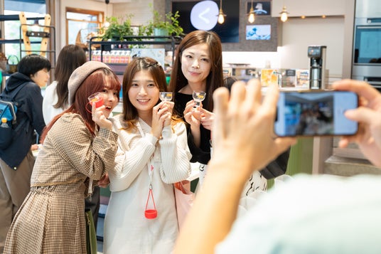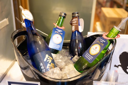 また、恵比寿メイン会場、代官山サテライト会場、酒販店では、さまざまな日本酒をきき酒しながら、酒蔵の方から直接話を聞くことができます。気に入ったお酒は、その場でお土産としてご購入いただけます。会場では、マルシェ形式で酒蔵が試飲販売ブースを出展します。他にもクリエイターが手がけた公式マスコットグッズの手売りコーナーもあります。