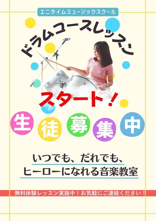 - 楽器経験がないけど音楽を始めたい方初心者でも安心して始められるドラムレッスン。リズム感を身につけることで音楽の楽しさが広がります。