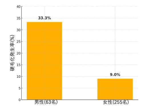 図1. 医療脱毛後の男女別の硬毛化発生率