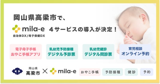 ミラボ、岡山県 高梁市で、母子保健DX「mila-e」の母子手帳アプリ・乳幼児予防接種デジタル予診票・乳幼児健診デジタル問診票・オンライン予約の提供を開始