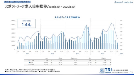 【調査レポート】短時間・単発で働くスポットワークの求人倍率は1.44倍 スポットワーカー平均賃金は1,302円で過去最高額を更新