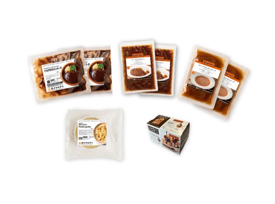 ドミグラスハンバーグ×2、きたあかりポテトグラタン×1、フレンチオニオンスープ×2、
