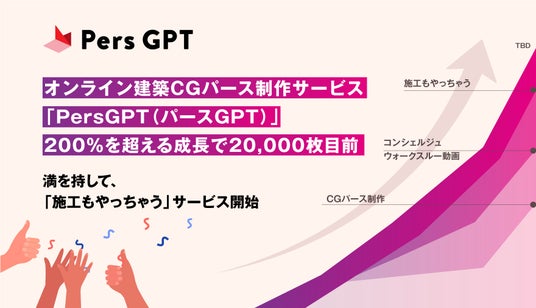 オンラインCGパース制作『PersGPT(パースGPT)』が200%を超える成長で20,000枚目前。 満を持して「施工もやっちゃう」サービスを開始
