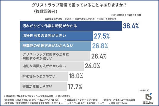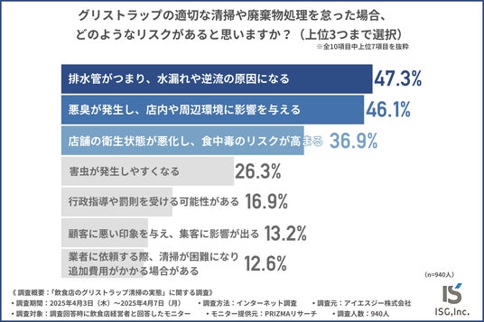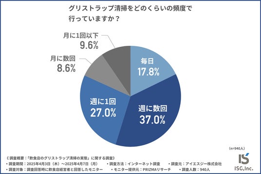 アイエスジー株式会社の環境事業部では、飲食店経営者を対象に「飲食店のグリストラップ清掃の実態」に関する調査を行いました。