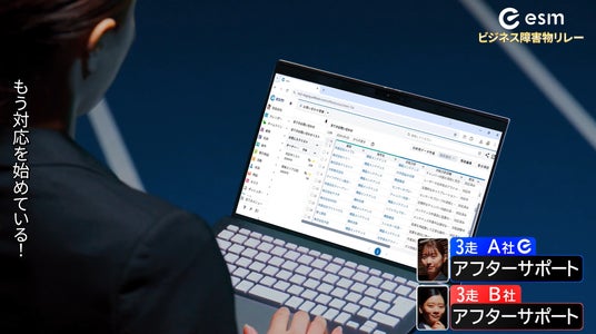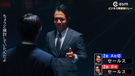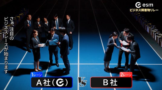 本CMは、先行して2025年1月よりWeb限定で公開しています。CMでは、esmを導入しているA社と、未導入で準備不足のB社のビジネス競争を、競技場でのリレーレースになぞらえて描いています。各ビジネスプロセスにおける、膨大な顧客データの中から最適解を導き出し、即座に顧客へ対応。かつ、そのデータをシームレスにビジネスプロセス間で共有した企業が、マーケットでの勝者になる様子を描いています。