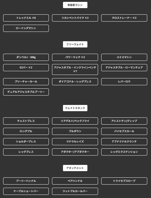 - 多彩なマシンと充実の設備:有酸素・フリーウェイト・ウェイトスタックマシン完備