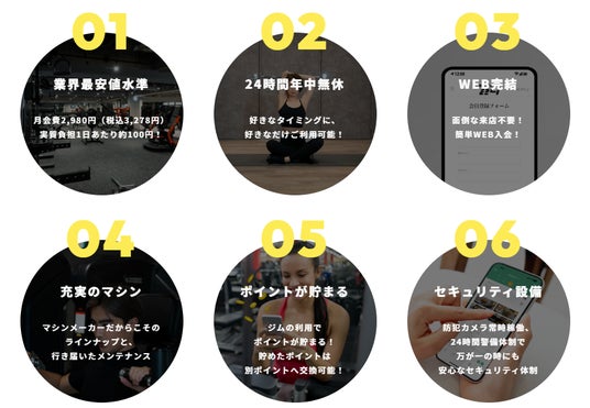 - 24時間営業&年中無休:ライフスタイルに合わせていつでもトレーニングが可能