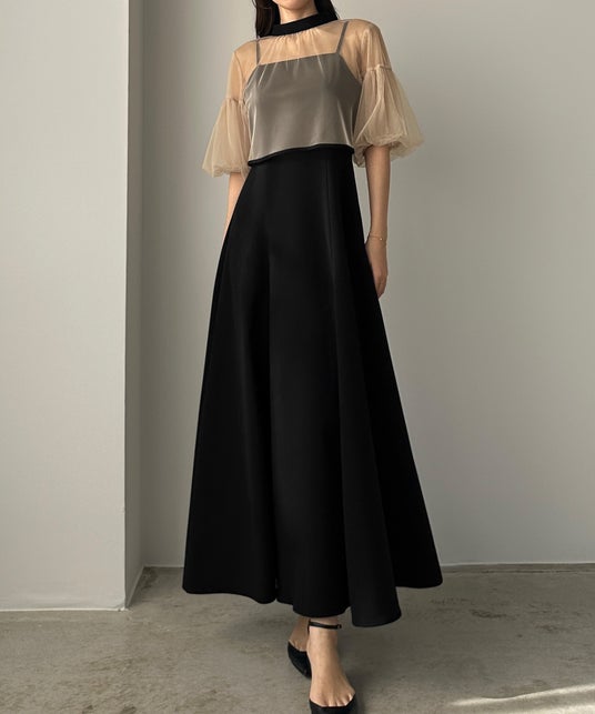 【オケージョン対応】2WAY半袖シアーボレロ+フレアキャミワンピースSET