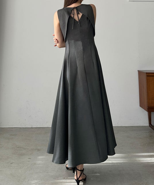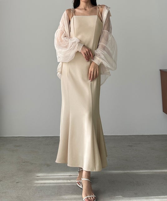 【薄くて軽いジョーゼット生地】リボンセミマーメイドキャミワンピース