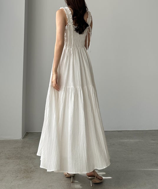 フリルショルダーシャーリングキャミワンピース【一部ペチスカートSET】