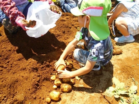 園児達によるジャガイモ掘りの様子