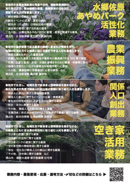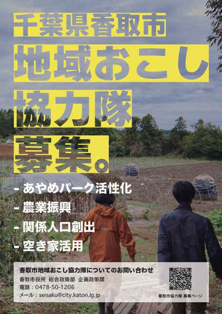 香取市で生活し、地域住民や関係者と信頼関係を築きながら、新たな視点や発想で、地域課題に取り組む、香取市地域おこし協力隊の隊員を新規に募集します。