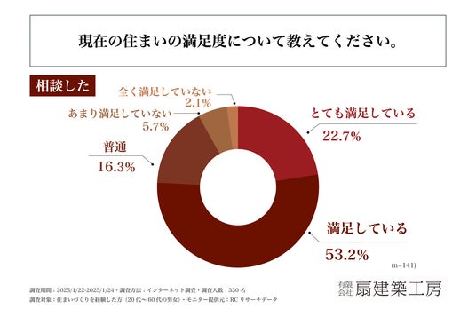注文住宅の建築やリノベーションを行う際、設計から施工まで一貫して対応できる建築士に相談した人の75%以上が、現在の住まいに満足している!有限会社扇建築工房が「住まいの選択」に関する実態調査を実施!