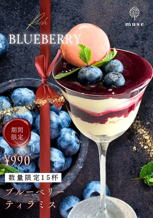 東京で話題のルーフトップ付き「muse」がついに関西初上陸。4/29なんば道頓堀店、5/5錦糸町店オープン。旬のブルーベリースイーツも限定登場!