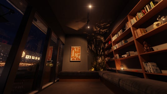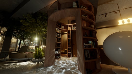 室内には、ぬくもりある木製の本棚が並び、アート作品や書籍に囲まれた心落ち着く空間に。静かに本を手に取り、シャンパンを片手に過ごす贅沢な時間は、まさに大人の隠れ家そのものです。