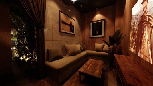 道頓堀店の下階では、木の温もりに包まれたラグジュアリーなラウンジ空間をご用意しました。間接照明がやわらかく灯る半個室のソファ席は、まるで都会の喧騒を忘れさせるかのような落ち着きとプライベート感を演出。ふかふかのソファに身を預けながら、こだわりのシーシャと共に、ゆったりとしたひとときをお楽しみいただけます。
