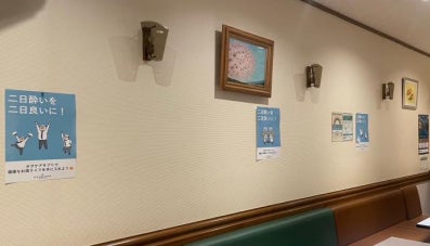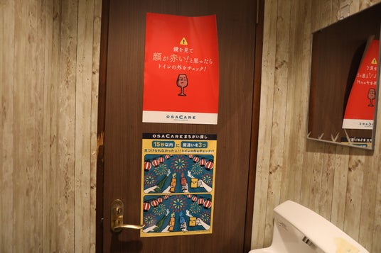 2.間違い探しのポスター: お手洗い内のドアに設置し、お客様に自身が酔っている事を自覚してもらい、危機意識を喚起する事を目的として設置しました。